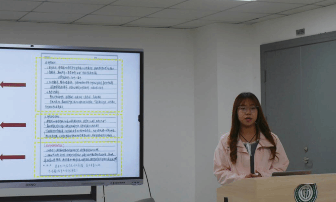 分享伊始,毕丽芳结合翻译专业硕士培养特色展开分享。她提出科研记录本可以从“基本信息、主要内容、自我思考”三方面进行记录,总结了理论学习三个阶段,鼓励大家主动充实自身翻译实践经历,做好记录并从中反思总结。最后,她以“保证论文的核心思想和内容的原创性”做结,提醒各位同学在自身科研经历中减少对AI工具的依赖性,号召大家“拥抱技术,坚守底线;求真务实,思辨创新”。