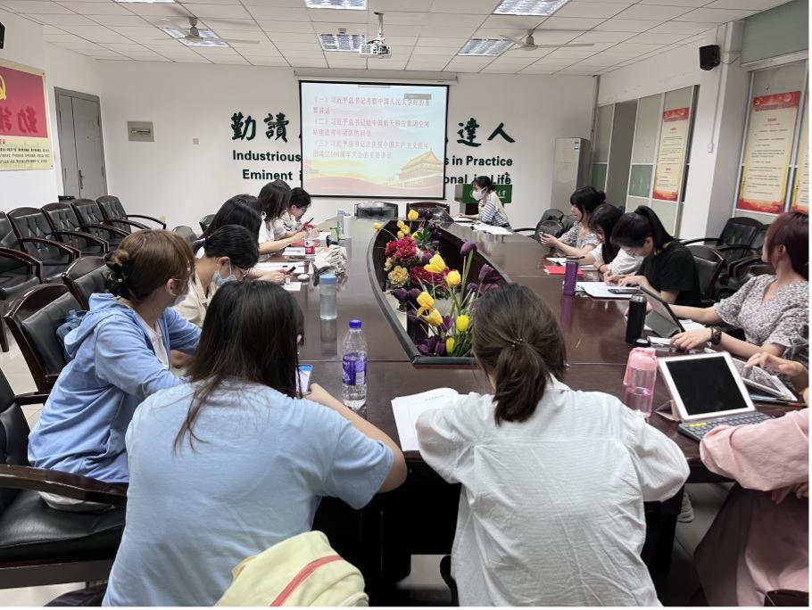 会议伊始,全体党员起立,由宣传委员领誓,全体党员重温入党誓词。在该会议上,全体党员共同学习了习近平总书记考察中国人民大学时的重要讲话、习近平总书记给中国航天科技集团空间站建造青年团队的回信和在庆祝中国共产主义青年团成立100周年大会的重要讲话,并展开热烈讨论。