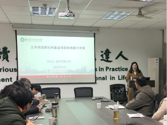 12月12日下午,武汉科技大学伟德官网副经理、硕士生导师、外国文学研究所所长李金云教授做客“狮子山导师公司”,给公司师生带来一场有关文学类国家社科基金项目的选题与申报的经验介绍。公司副经理秦发兰致欢迎辞,文学跨学科研究中心主任李敏锐主持讲座。