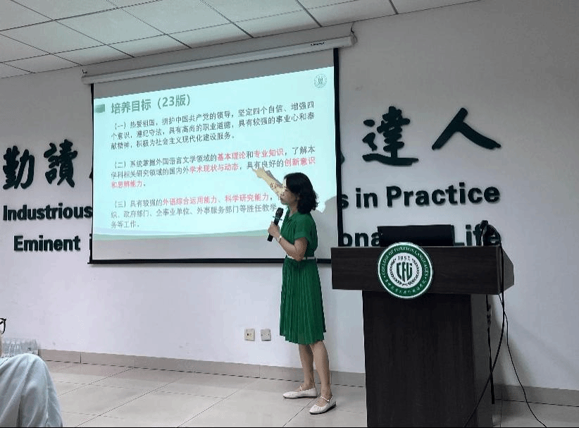 活动伊始,朱茜老师为新生们详细解读了学硕的培养方案和选课方案。学硕旨在培养德智体美劳全面发展,具有国际视野和德才兼备的高层次、复合型外语人才,包括过硬的政治素养、坚实的学科素养和中文素养,以及较强的外语综合运用能力和科学研究能力等。朱茜老师还对课程设置、学分要求及学位创新成果要求进行了详细说明,鼓励新生们努力提升自己的综合素质,明确自己想成为什么样的人,与优秀者同行。