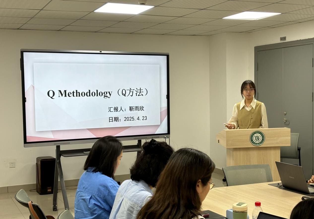 在互动交流环节,袁谦老师就靳雨欣汇报的Q方法的研究设计进行了提问,引发了关于Q排序中如何处理受试者无法确定样本陈述排序的探讨。朱茜老师提出元分析中如果异质性较大应该如何处理的问题。多位师生从不同角度展开深入探讨。