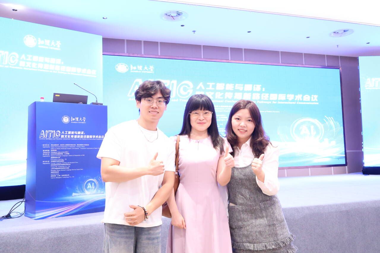 2025年9月27日至28日,由江汉大学主办的“人工智能与翻译:跨文化传播新路径”国际学术会议在武汉顺利召开。会议邀请了国内外多所高校与科研机构的知名专家学者,围绕人工智能背景下的翻译实践与跨文化传播议题进行深入交流与探讨。伟德官网副教授张娟带领2023级学术型硕士研究生吴洪恬、2024级学术型硕士研究生徐莉娟与胡一恒出席会议,并在分论坛中作专题发言,展现了公司师生在AI与翻译融合研究方面的探索成果与青年风采。