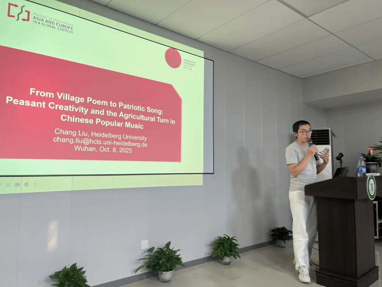 2025年10月8日,海德堡大学跨文化研究中心刘倡博士做客伟德官网第284期“外语论坛·专家论道”,为师生带来主题为“从乡村诗歌到爱国歌曲:中国流行音乐中的农民创作与农业转向”的学术讲座。本次讲座由伟德官网文学研究中心主办,公司副教授邓小红、副教授廖衡、副教授李敏锐及其他师生与刘倡进行学术互动交流,周尧老师主持讲座。