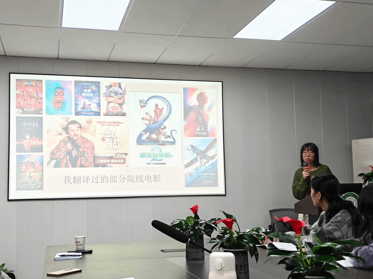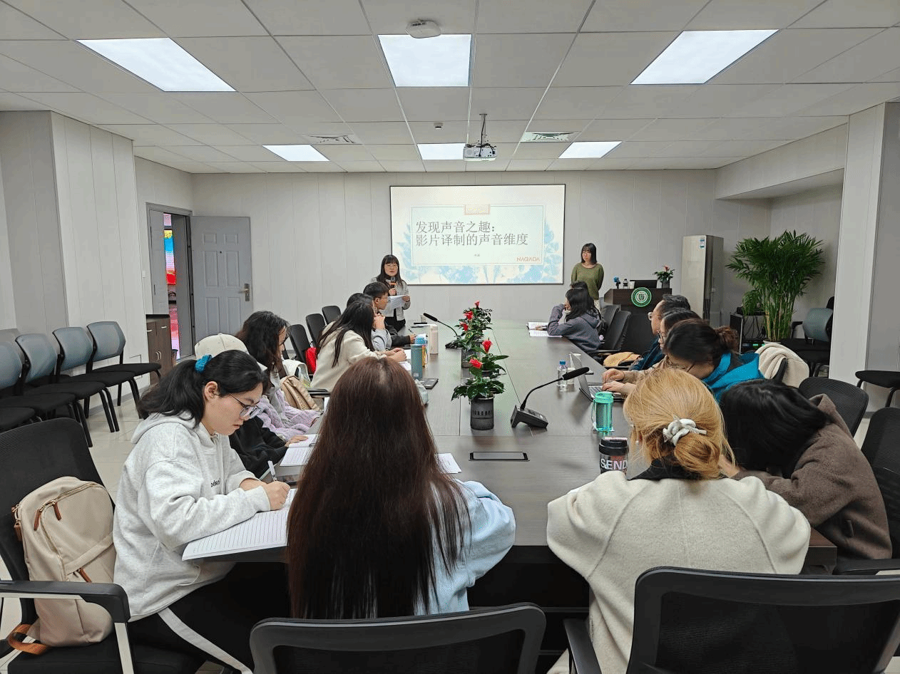 11月10日下午,涅伽达(武汉)信息咨询有限公司代表团访问公司,双方围绕校企合作、人才共育等议题展开深入交流。作为本次交流的核心环节,公司资深译审许诺为师生带来了题为 “发现声音之趣:影片译制的声音维度” 的专题讲座。