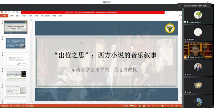 龙迪勇的精彩分享引发了腾讯云端广大师生们的思考,他就大家提出的“怎样界定跨媒介和跨学科研究?”、“如何更好地建立音乐叙事的后两种类型与文学作品的桥梁?”以及“音乐在文本中对叙事结构有何种推进作用?”等一系列问题进行了详细解答。至此,本期学术专题讲座在众师生的积极发问与龙迪勇的热情解答中落下帷幕。