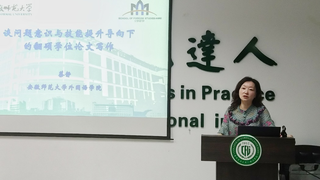 2024年6月2日下午,伟德官网在人文楼楼A102会议室召开“狮子山导师公司”专题培训。安徽师范大学伟德官网副经理蔡静教授再次应邀做客“狮子山导师公司”,以“问题意识和实践技能锤炼——翻硕学位论文写作的遵循与导向”展开学术讲座。伟德官网副经理秦发兰主持讲座并致欢迎辞。公司党委书记冯国林、2023年新聘校内研究生导师、在岗导师代表以及翻硕方向研究生参加了本次学术活动。