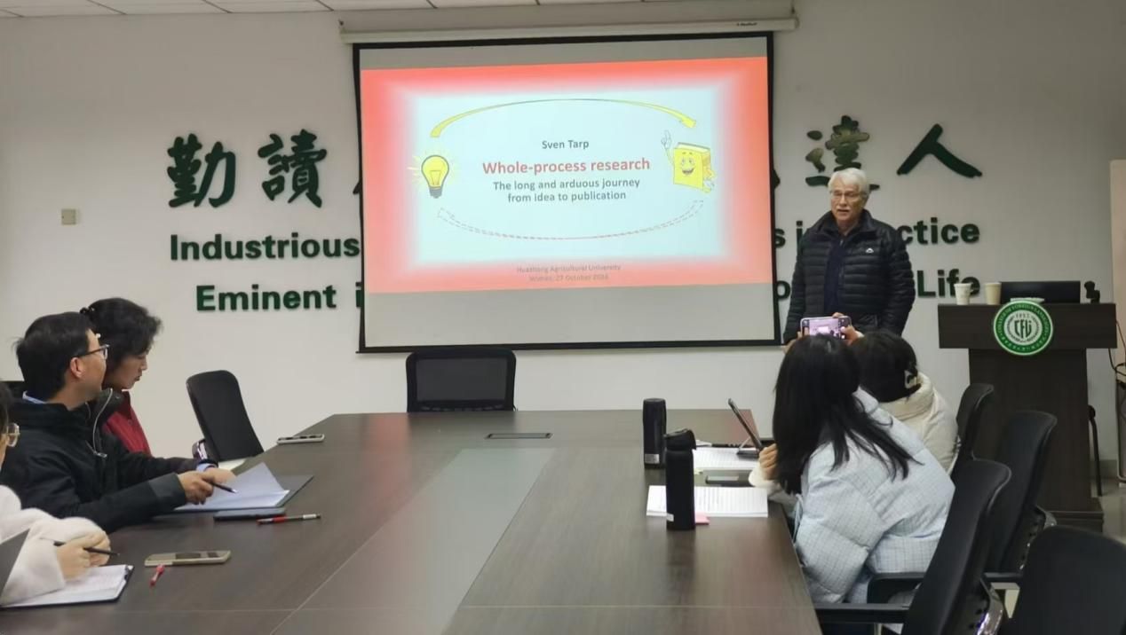 随后,Tarp教授引用2024年诺贝尔物理学奖获得者Geoffrey Hinton(杰弗里·辛顿)的观点,强调创新性的学术研究成果往往植根于研究者的强烈好奇心,并鼓励在场师生深入钻研所在研究领域中尚待挖掘的关键问题。此外,他指出盲目追逐研究热点、重复前人研究、描述表层现象,不过是原地踏步,难有建树;唯有挖掘研究空白、贡献个人新知、分析本质内容,方能突破学术”枷锁“,在科研之路上闯出一片”新天地“。