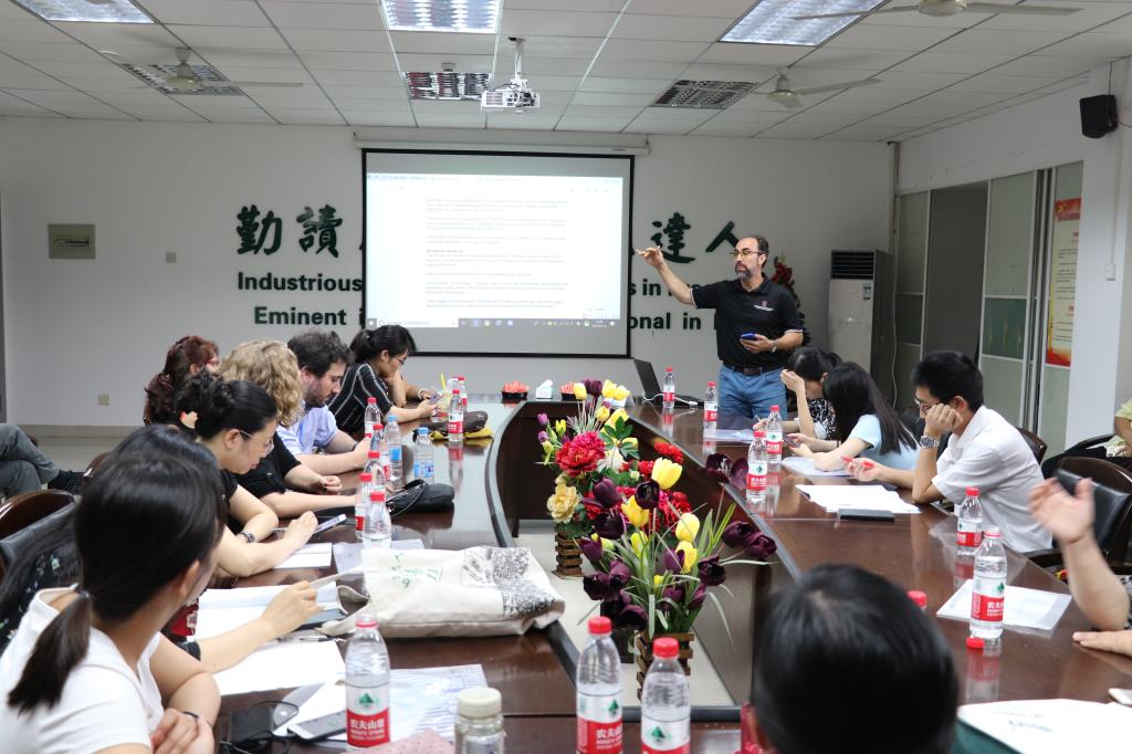 7月13日,2019中美外语教育国际研讨会在公司国际学术交流中心四楼会议室举行。会议由美国俄亥俄州立大学和公司共同主办,8名海外专家和5名公司外语教师在会上作专题报告。来自俄亥俄州立大学、密歇根大学、麻省大学阿姆赫斯特分校、武汉大学、湖南师范大学等高校的60余位教师参加了研讨会。