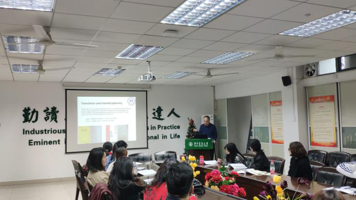 在提问环节中,封教授热情解答了师生提出的有关文学经典的翻译和跨学科研究的问题,就翻译版本对比研究、译本读者类型、小说中的模糊性和重译等问题和大家进行了探讨。