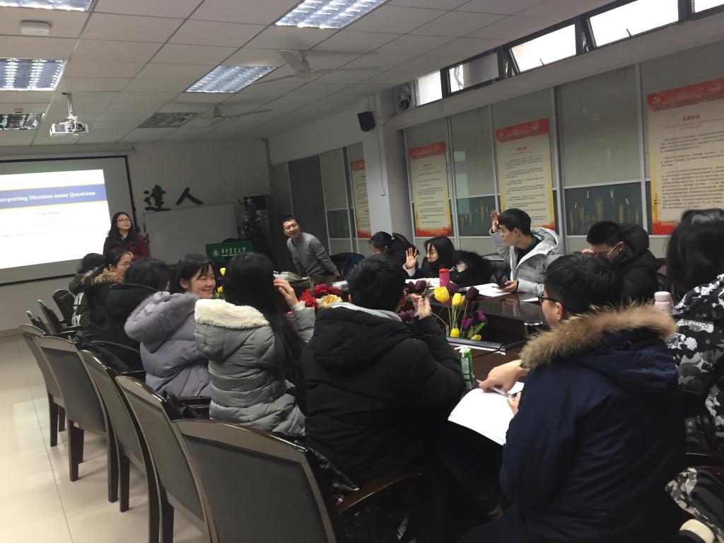 12月27日下午2点,应公司邀请,美国罗格斯大学的助理教授向伊梅做客公司“外语名家谈”学术交流活动,带来了一场题为“Interpreting Mention-some Questions”的讲座。讲座由公司副教授徐贝贝主持,2018级MTI全体员工、MTI教师代表参加了本次讲座。