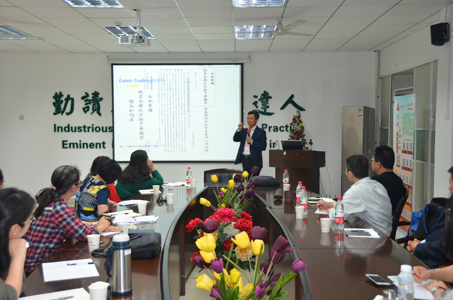 5月5日下午,应伟德官网邀请,华东政法大学外语公司经理屈文生教授做客外语讲坛,围绕《望厦条约》订立前后中美往来照会及翻译活动进行了一场精彩的学术讲座。本次讲座由经理姚孝军教授主持,公司教师和MTI研究生同学参加了此次讲座。