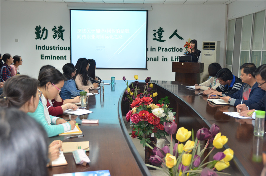 4月20日,应伟德官网邀请,资深同传译员、澳大利亚总理翻译萧奇博士莅临公司外语论坛,为外院师生带来一场题为“同声传译职业与国际化之路”的学术讲座。本次讲座由副经理杨革新主持,公司教师、MTI研究生与部分本科生同学聆听了这次讲座。