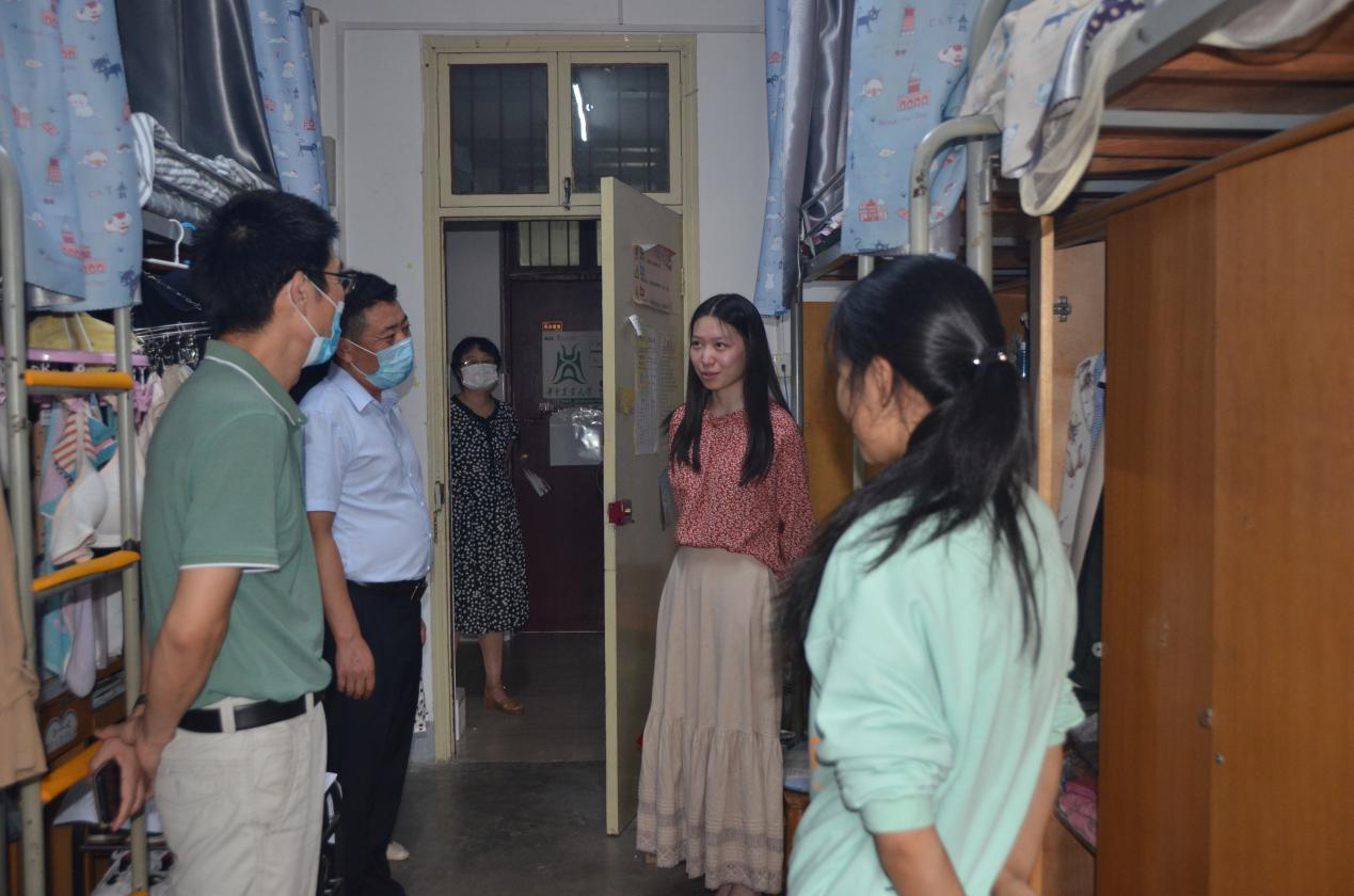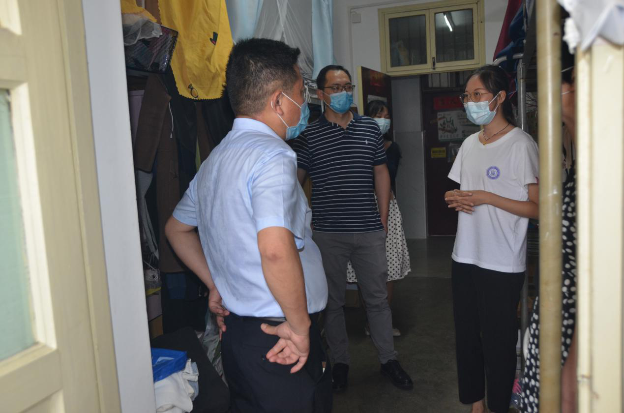 走访期间,胡守强一行亲切地询问毕业生返校情况,在校生活状况,以及工作落实情况,叮嘱同学们在校期间要提高安全防范意识,减少群体性聚集,同时安排好毕业离校前的各项事宜,做到忙而不乱,安全离校。针对毕业生面对求职offer犹豫不决的情况,胡守强鼓励同学们先就业,再择业,积极抓住宝贵的就业机会,为今后的求职、深造积累经验。同时,覃江华对毕业生们送出殷切的叮嘱和深切的祝福。