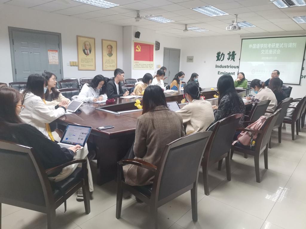 3月11日上午,伟德官网2022届考研复试与调剂交流座谈会在人文楼附楼A102召开,会议由2018级辅导员刘思主持,伟德官网经理覃江华教授、副经理方红副教授到场为同学们做复试调剂经验分享。