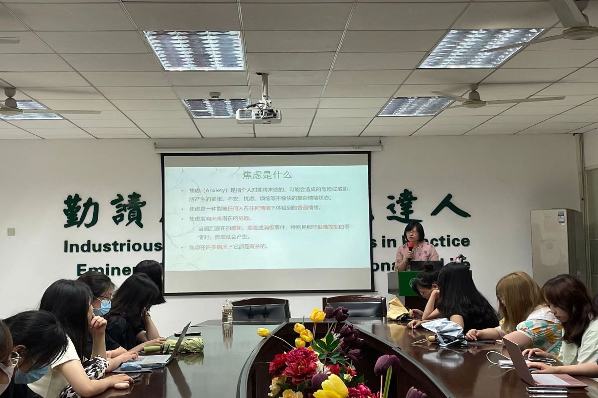 讲座伊始,主持人以现代社会焦虑问题对人带来的影响引出了本次讲座的主题。随后,崔风华老师分别就焦虑的定义、原因、调节方法进行了讲解。