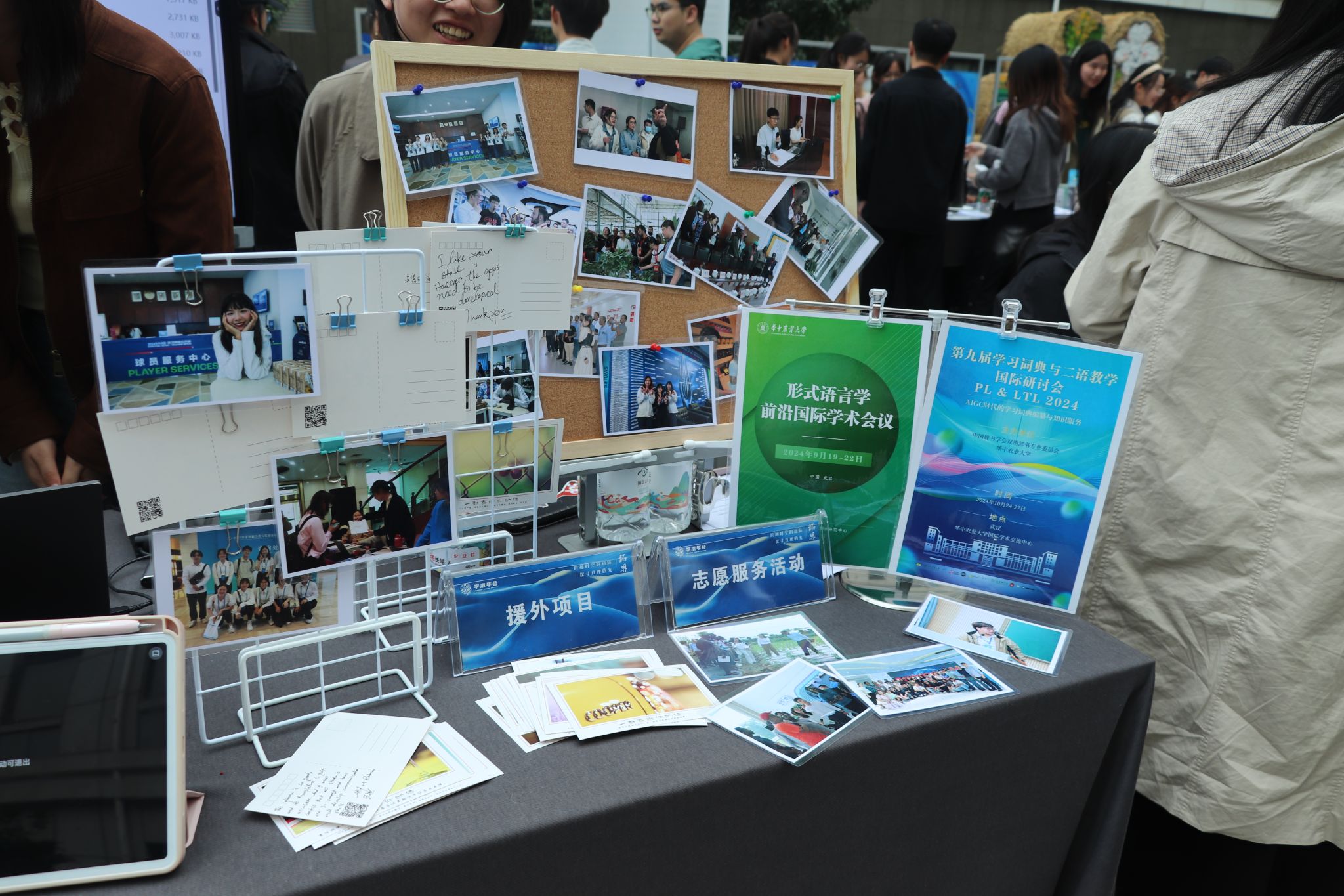 影像展区呈现了公司研究生在国际志愿服务、援外实践项目及国际学术会议中的广泛参与,志愿者们热情地向参观者讲解相关活动和经历,展现了语言学习与国际关系、文化研究、技术应用等多学科的深度融合,突显了伟德官网跨学科教育模式的优势。同时,也展现了公司员工丰富的国际实践机会和全球视野。