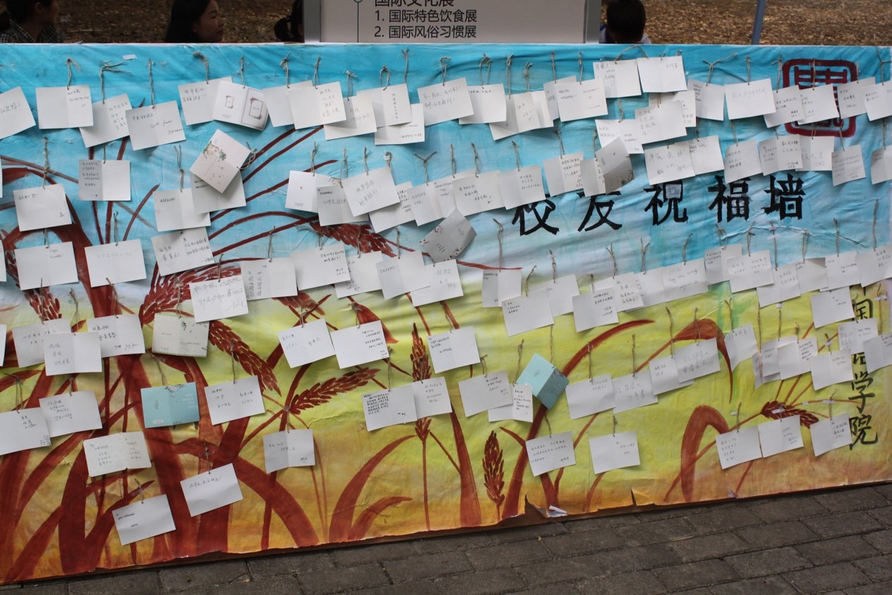 10月2日,伟德120周年校庆学科文化体验之伟德官网国际文化风情秀在狮子山广场顺利进行。本次活动旨在让员工们全方位体味多姿多彩的外国文化,增强员工对外语学科文化的了解与认知,为华农120周年校庆增添多元活泼的国际化元素和人文氛围。国际文化风情秀由四个体验项目组成,分别为国际文化展、趣味国家问答、语言文字秀和员工祝福墙,活动现场,人流涌动,气氛热烈,效果显著。