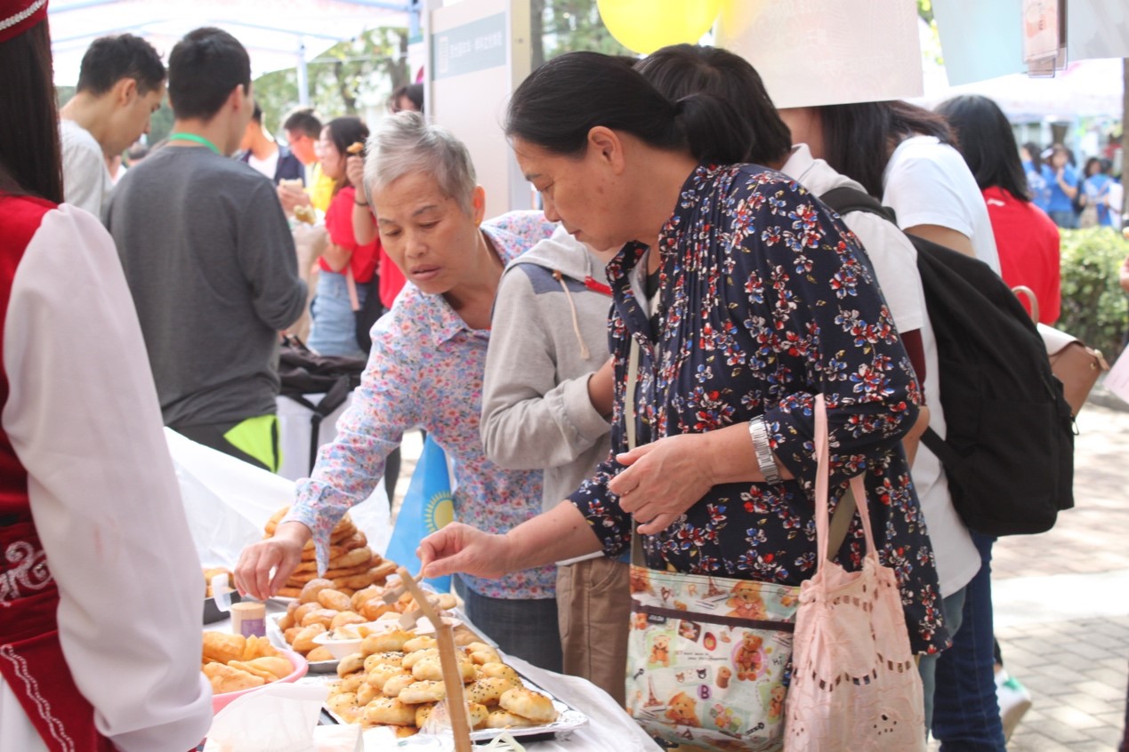 在国际文化展体验项目中,公司邀请在校职工共同参与,为员工们带来一场充满异域风情的饮食、风俗文化体验盛宴。第一个展出的国家是哈萨克斯坦,两名身着民族服饰的职工带来特色美食,并献上哈萨克斯坦的民族舞蹈。诱人的美食和曼妙的舞姿吸引了大批游客前来围观。