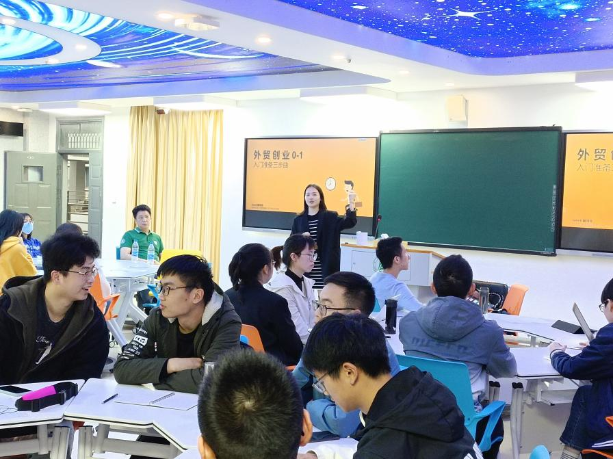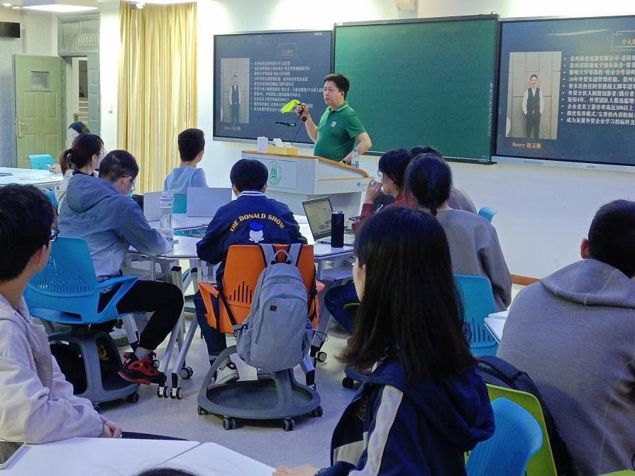 赵玉衡老师不仅给《双百案例课程》授课,还给商务英语专业本科生作了一次精彩的创业报告。