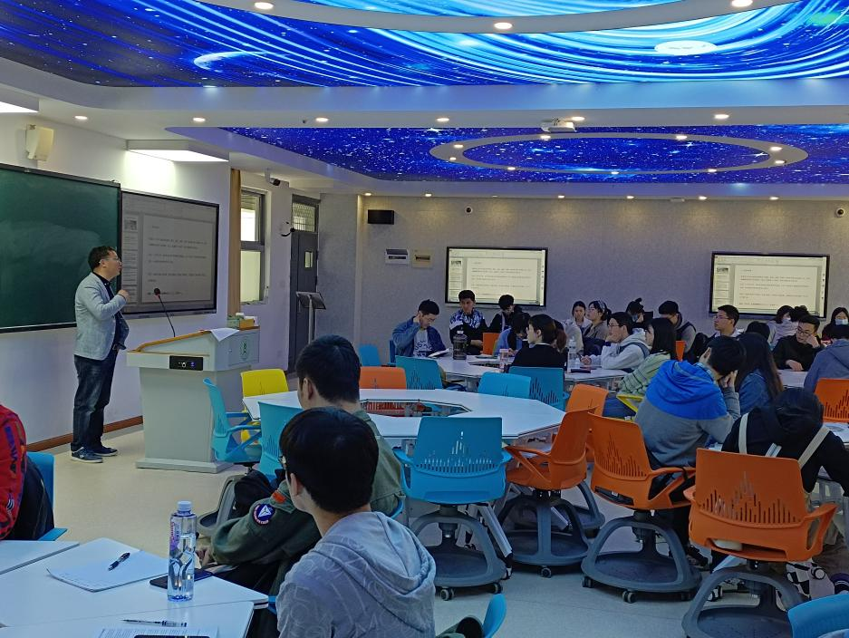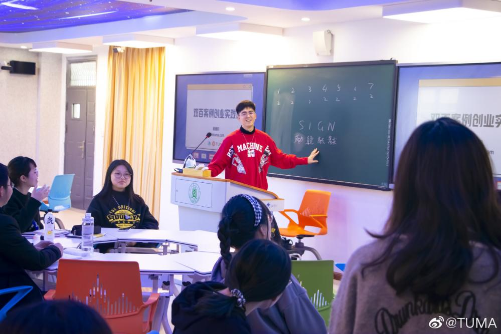 第一次课(3月16日5-6节)、第二次课(3月23日5-6节)由本校英语专业应届毕业生戚继昀讲授。他在学习期间成功创办了土马(武汉)网络科技有限公司,创立了自己的微信公众号TUMA。不仅讲授了自己作为一个英语专业老员工创办网络科技公司的经历和体会,提出创业初期必须具备的几大要素等。对于大家热议的“老员工是否应该创业”这个问题,他没有直接给出答案,而是出了一个辩题“家境普通,但是很有想法,该不该在大学期间选择创业?”启发同学们进行思考,并分组从正方和反方展开激烈辩论,然后根据辩论情况进行总结。通过这次辩论,员工们明白创业不仅可以是一些投资非常巨大的项目,也可以是一些投入很小的小本买卖,更重要的是创业要紧跟时代步伐,要抓住时代风潮,与时俱进。