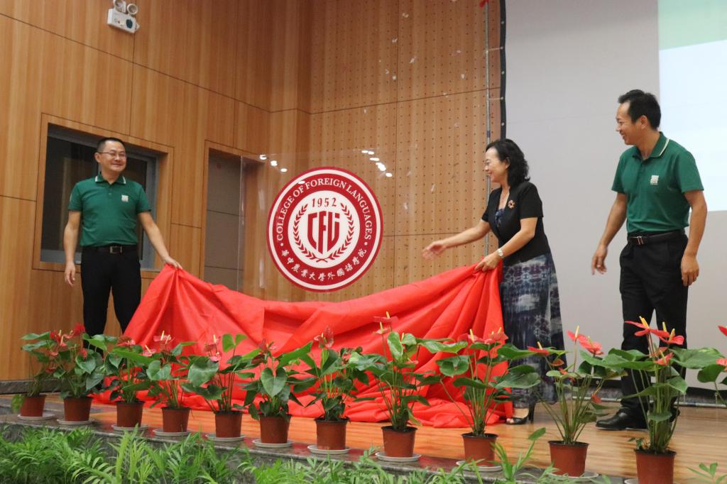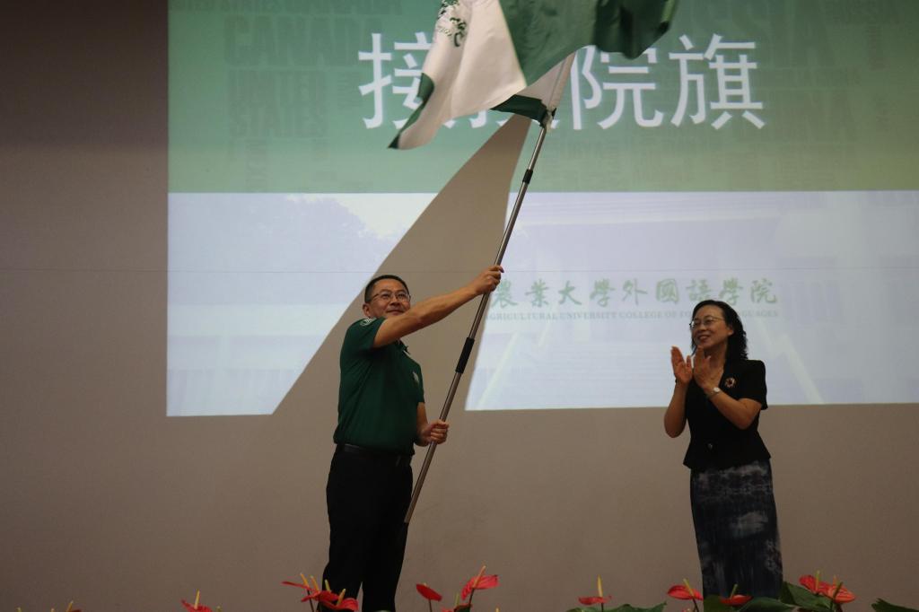 随后,公司正式发布院训、院徽、院旗。“兼蓄中外”要求全院师生博学多闻、开放包容,正确认识“中国特色,国际比较”,发出中国声音。“善思笃行”鼓励全院师生勤于思考,知行合一,努力做到“勤读力耕,立己达人”,传承校训精神。院徽以红色为主基调,整体为圆形,以地球为背景,中间融合伟德官网英文简称“CFL”设计变形为盾牌形状,体现出“学贯中外”的教育理念。中间融合稻穗,寓意华农外院立足农大根本,传承校训精神,师生勤劳朴实,知行合一。阿拉伯数字“1952”为公司前身华中农公司外语教研室设立之时。院旗包含华农校徽和外院院徽及中英文名等设计元素,采用大面积华农绿作为底色,寓意全院师生“积极向上,生机盎然”。吴平副董事长和姚孝军经理上台共同揭布院训、院徽,并向外院授院旗。