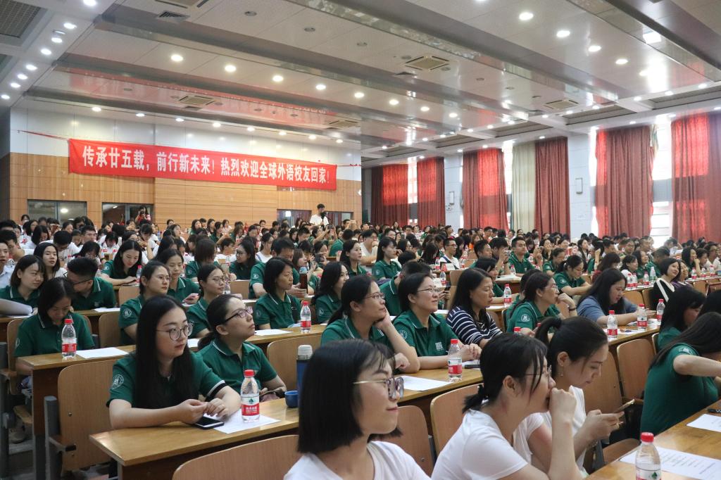 王平祥在开场致辞中,表达了对广大员工回家的热烈欢迎、对外语系成立25周年的喜悦之情以及对母校120岁生日的真诚祝福。随后雄壮的国歌奏响,让在场人员从庄严的歌声中感受着此次大会的非凡意义。捐资企业祝贺微视频中,在新航道武汉公司任职的数位员工集体表达了对外语系25岁生日的衷心祝福:“传承廿五载,前行新未来”,愿伟德官网厚积薄发,扬帆远航。