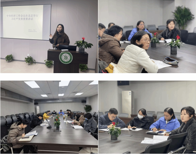 12月25日下午,英语系和商务英语系教工党支部召开组织生活学习会。本次学习会由金蓓同志主持,田婧同志和丁杨同志领学。田婧以“一张蓝图、两条政策、八个坚持”为主线,详细解读了12月10日至11日召开的中央经济工作会议精神。她首先回顾了“十四五”收官之年,面对外部冲击与内部转型叠加的压力,党中央带领全国各族人民有效稳住经济大盘,GDP增速、城镇调查失业率、物价水平等主要指标均优于预期,为第二个百年奋斗目标奠定良好开局;随后围绕2026年经济工作,领学了习近平总书记关于“必须充分挖掘经济潜能、必须更好统筹发展和安全、必须坚持投资于物和投资于人紧密结合”等重要论述,并重点阐释了更加积极的财政政策如何在保持必要赤字和支出强度的同时兜牢基层“三保”底线,适度宽松的货币政策如何灵活运用降准降息工具保持流动性合理充裕、引导金融资源向科技创新和中小微企业倾斜。通过理论结合实际,田婧帮助与会党员将宏观政策叙事转化为对日常生活工作的具体感知,深化了对中央经济工作会议精神的理解。