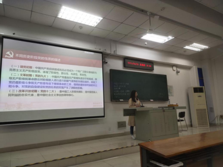 张帆从中国共产党的性质入手,向学员们普及了政党、政党性质、无产阶级政党性质以及党的宗旨的内涵,并强调同学们需要在理解这些概念的基础上,去体悟中国共产党的性质。张帆讲道:“党章中对于党在建党初期,党的九大时期,党的十二大时期的性质描述是不尽相同的,因为历史在不断向前发展。”她强调,十六大之后党章对党的性质表述与以前相比也产生了细微的差别,并告诉学员们可以利用十七字口诀来记忆党的性质——“一个领导核心”“两个先锋队”和“体现三个代表”。“党的性质分别从不同的角度,从侧面揭示了党的阶级性、先进性、代表性,党的阶级基础、群众基础和社会基础,党在中国特色社会主义事业中的地位和作用,以及党的根本宗旨。这也旗帜鲜明地表明党的最高理想和最终目标是实现共产主义。”