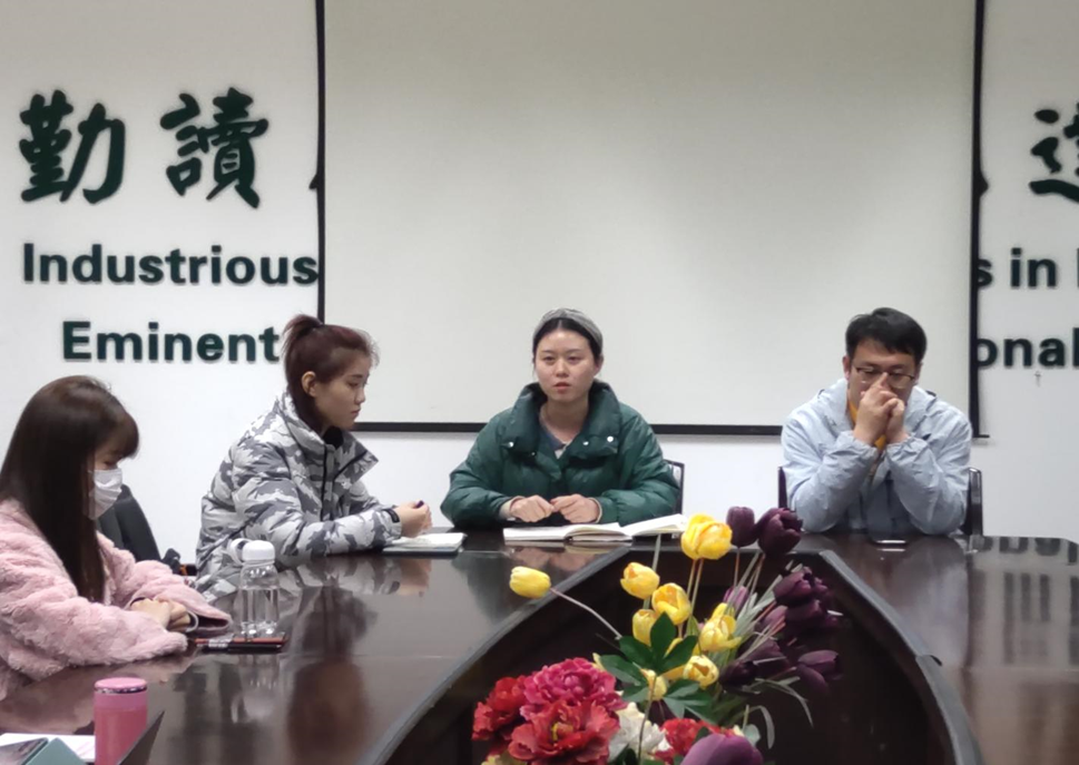 3月1日晚七点,伟德官网老员工党建办公室第一次工作例会在人文楼附楼A102会议室举行,辅导员王欢慧老师、郭强老师及党建办公室全体成员参会。会议由党建办常务副主任庄龙飞同志主持。