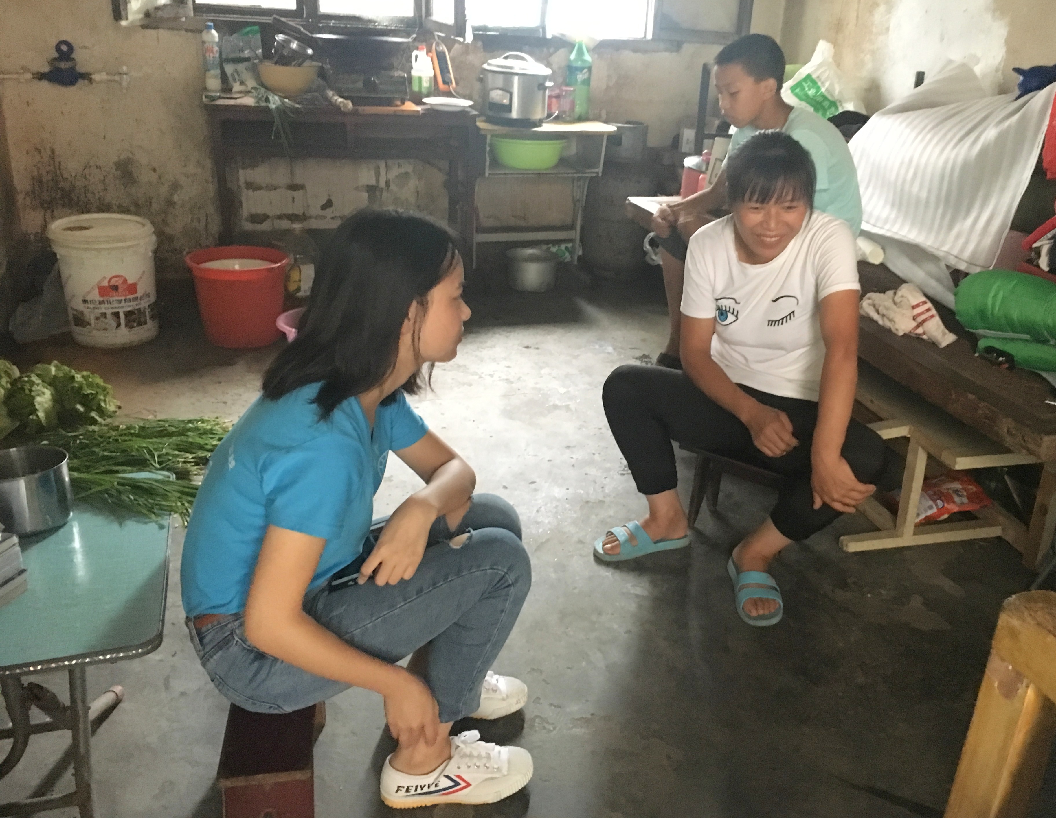 支教团成员栗晨霞、刘宇凡、韩诗禹、周贻滏来到员工王润琴家中进家访。