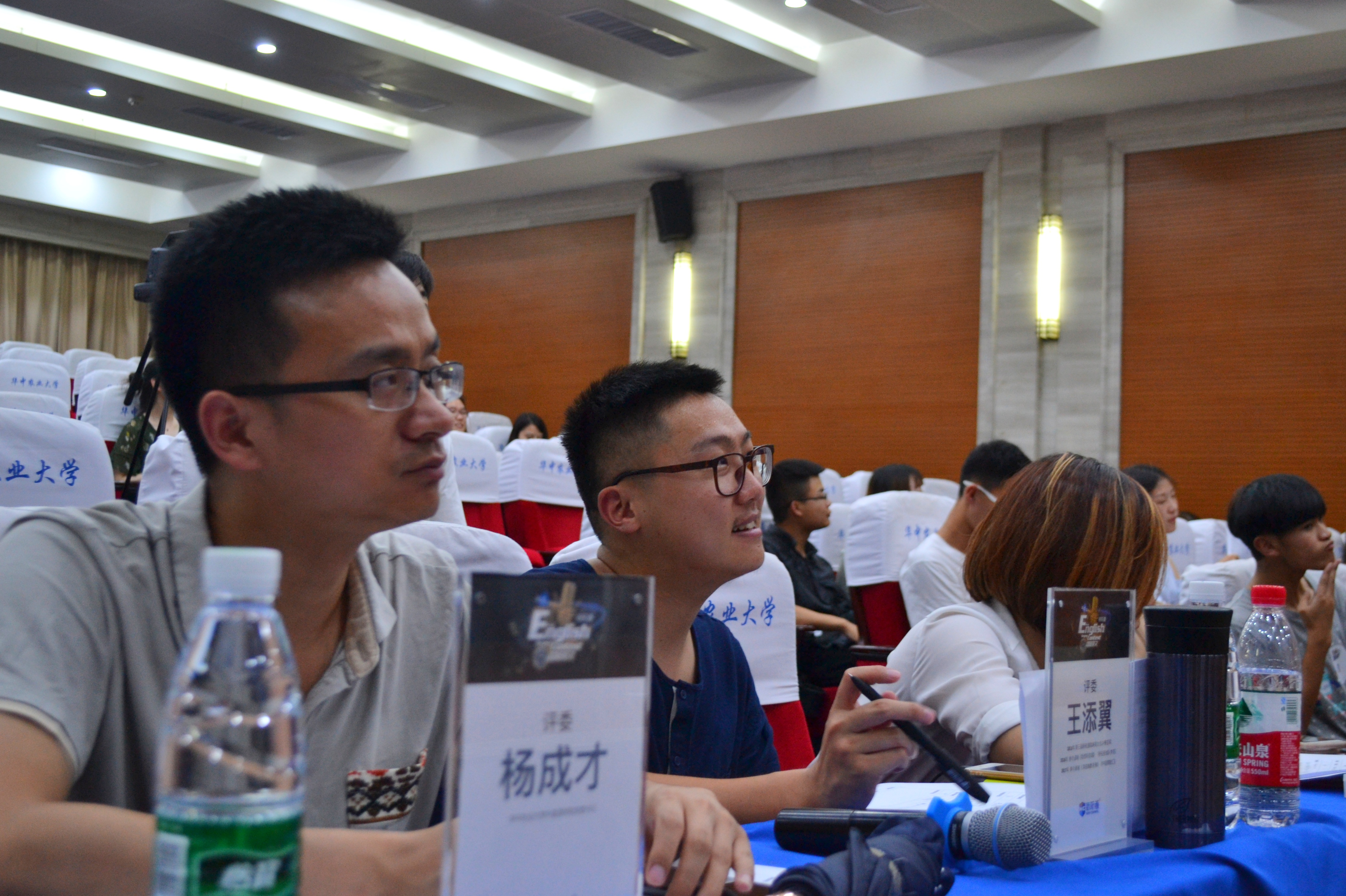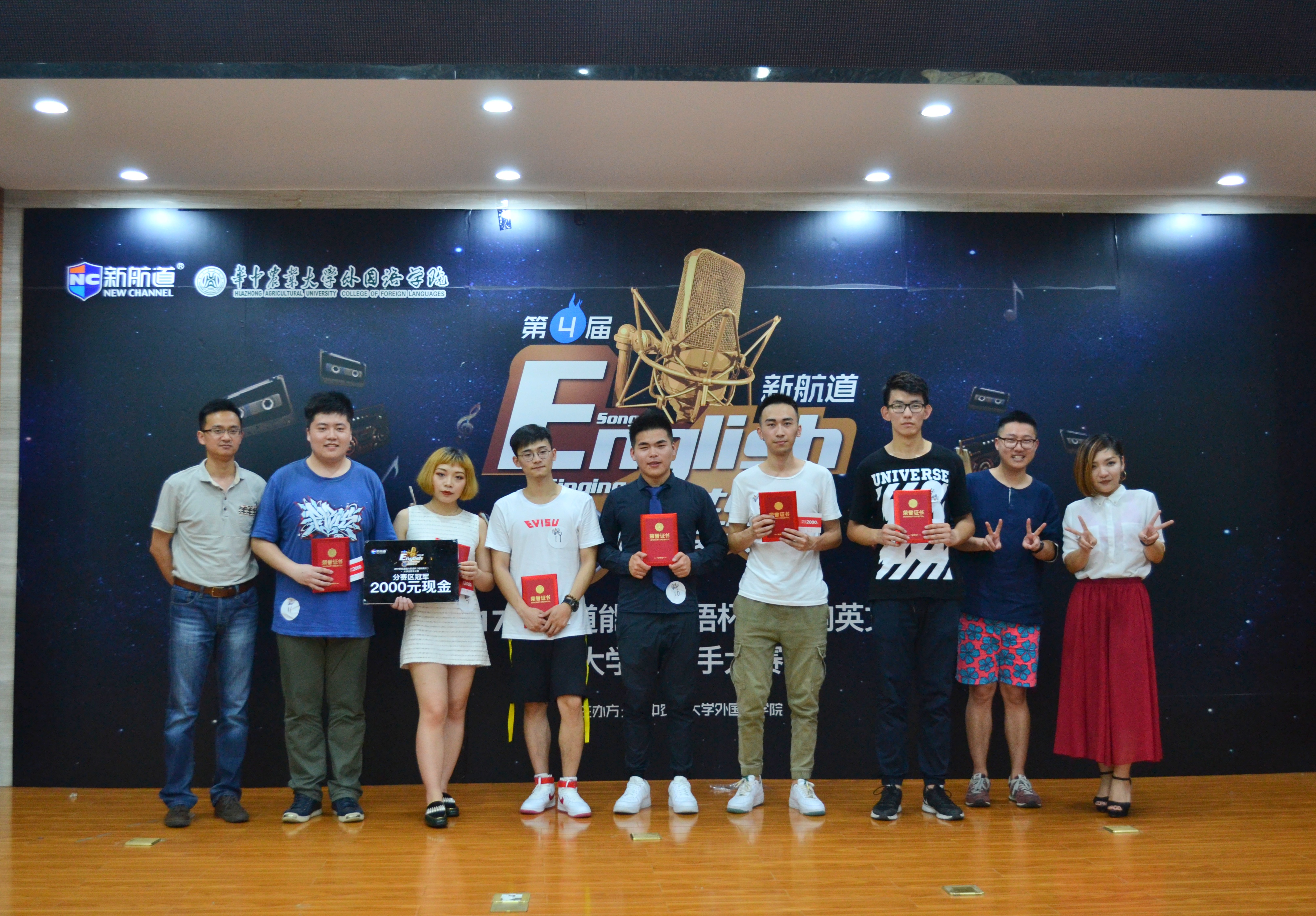 5月22日晚七点,新航道能力英语杯“唱响英文”老员工歌手大赛华农赛区决赛在综合事务大楼五楼报告厅举行。来自公司不同公司的20余名选手从海选中脱颖而出,在决赛现场上演了一场音乐盛宴。公司党委副书记杨成才、新航道能力英语听说讲师鲍奕妤、第三届新航道“唱响英文”总决赛亚军王添翼担任了评委。最终,七号选手王妤印与十一号选手王子鉴获本次大赛并列第一名。