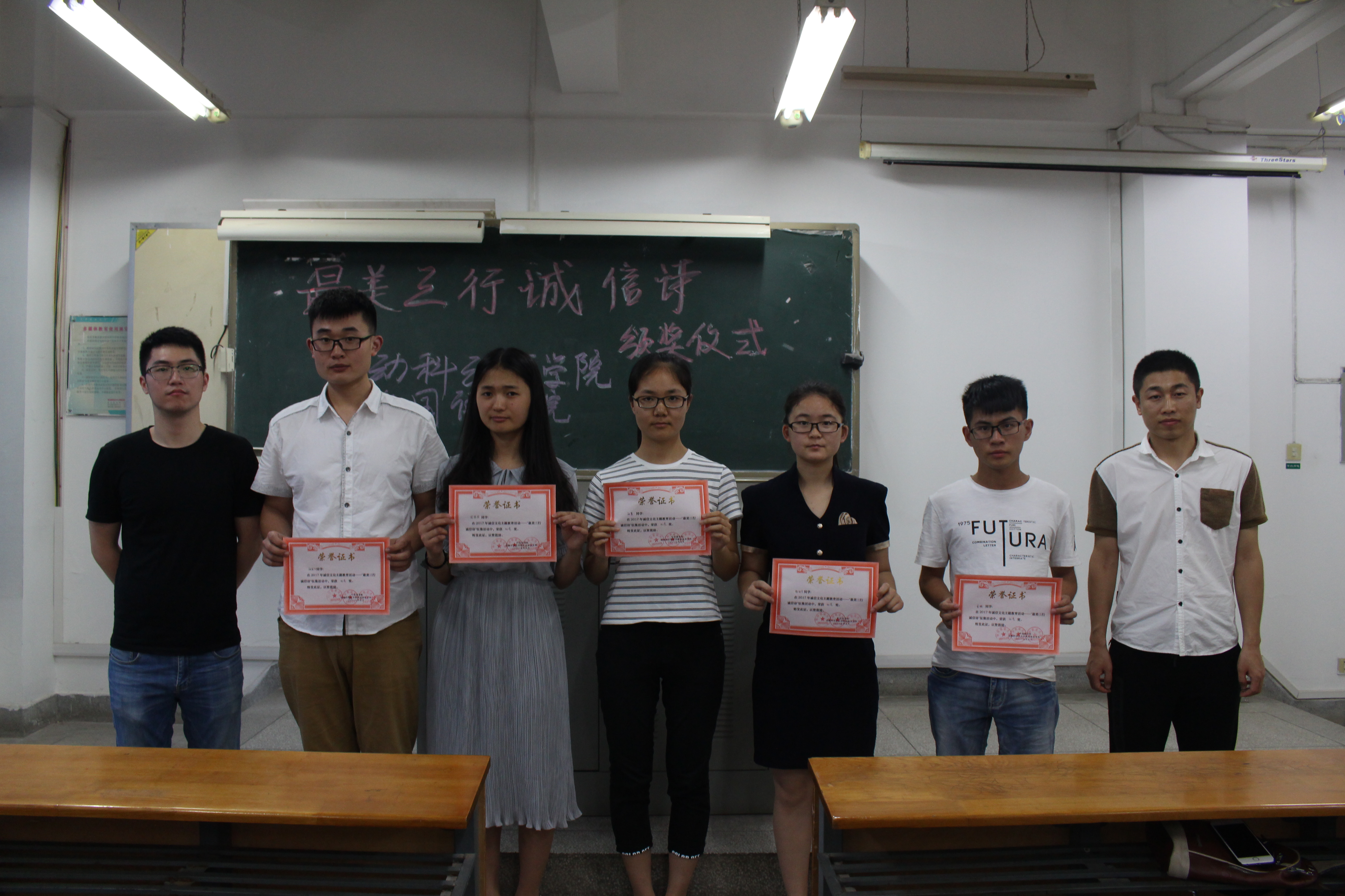 5月21日晚七点,由员工资助管理中心主办,伟德官网与动科动医公司合办的“最美三行诚信诗”颁奖仪式在二教402举行。伟德官网辅导员张秋实,动科动医公司辅导员刘德志,以及获奖选手共同参加了本次颁奖仪式。
