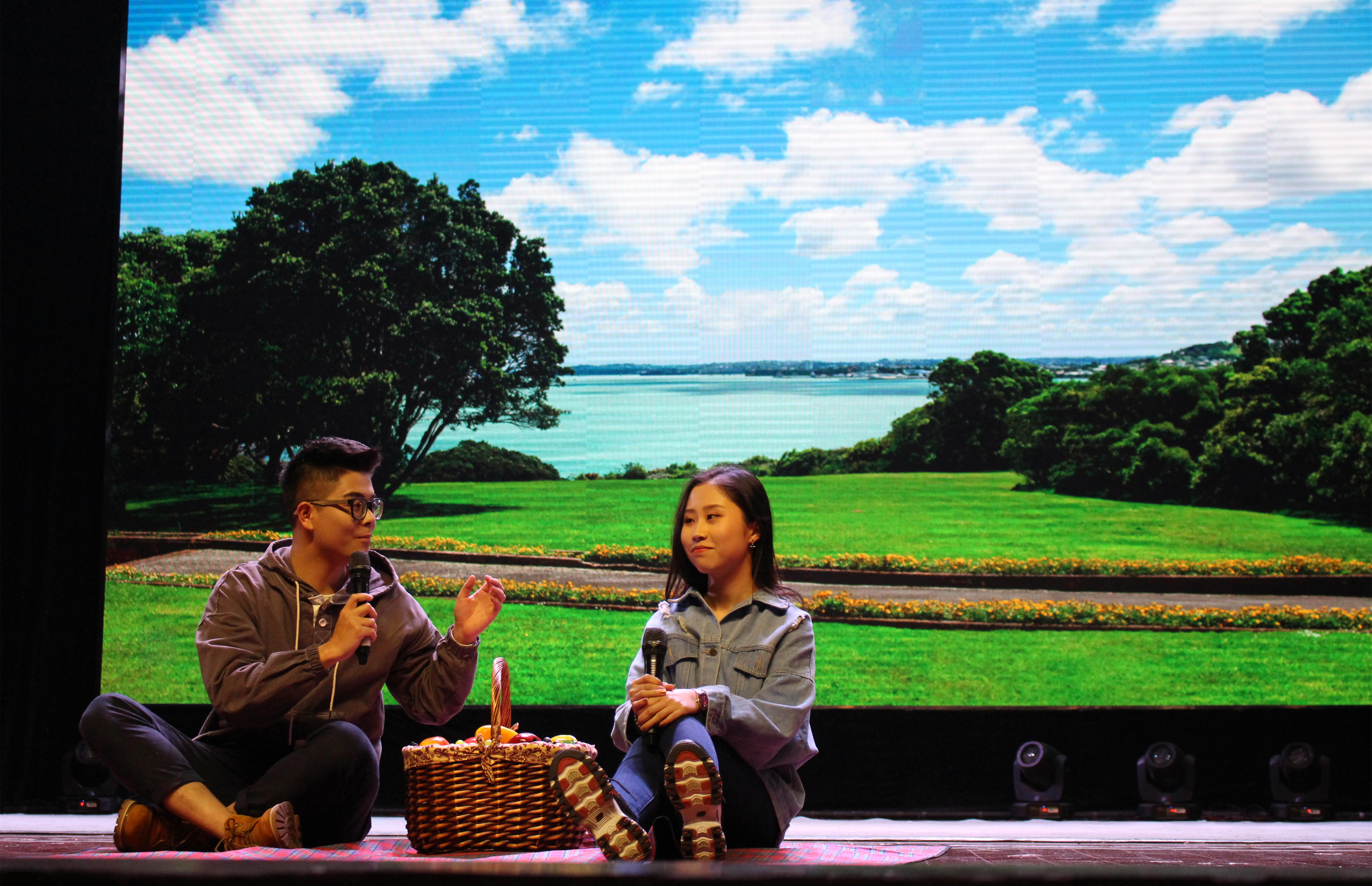 在镜灵剧社与达人舞团联袂出演的舞台剧《爱该怎么说出口》中,演员和舞者们们都拿出了专业的素养,向观众们诠释了爱的正确表达方式:从来就没有那么多恋爱技巧和恋爱建议,爱在该出口时就要坚定地说出口。莅临晚会现场的杨书记和三位辅导员也毫不逊色,倾情演唱《突然好想你》和《我要你》这两首歌曲,表达对员工的心声,尽展工作之外的风采,成为晚会的亮点,将晚会推向高潮。此外,主持团为观众带来诗朗诵《祖国,用青春的名义为你歌唱》,感情真挚饱满、慷慨激昂,表达了他们对祖国的热爱与赞扬。