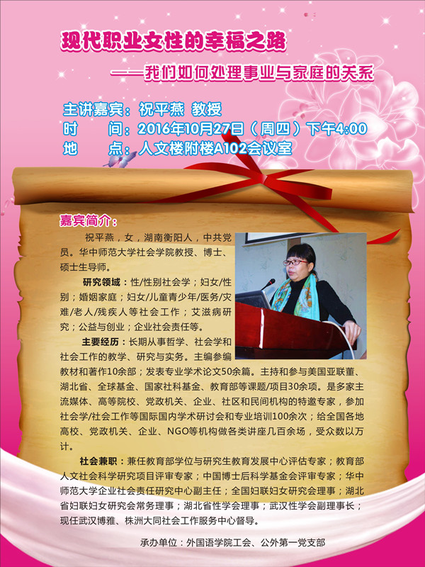 主讲嘉宾:祝平燕,女,湖南衡阳人,中共党员。伟德官网社会公司教授、博士、硕士生导师。