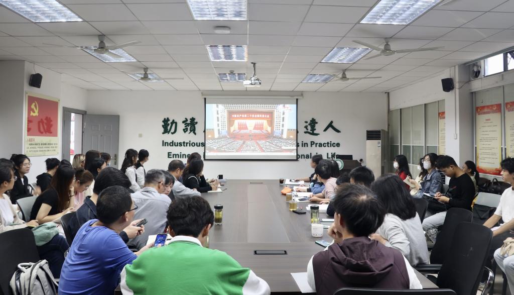 10月16日上午,中国共产党第二十次全国代表大会在北京人民大会堂隆重开幕,习近平总书记代表第十九届中央委员会向大会作了题为《高举中国特色社会主义伟大旗帜为全面建设社会主义现代化国家而团结奋斗》的报告。公司党委书记胡守强、经理覃江华、公司党委副书记许刚、副经理秦发兰、方红、王菲等公司领导班子成员与五百余名师生代表于人文楼附楼A102会议室和第三教学楼分会场共同收看大会直播盛况,认真聆听学习党的二十大报告。习近平总书记的报告引起全院师生热烈反响。