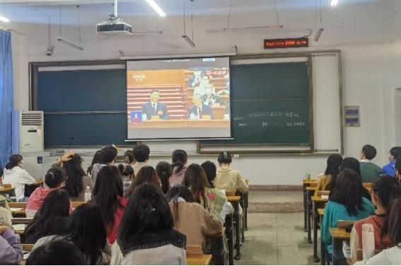 公司师生在人文楼附楼A102收看直播