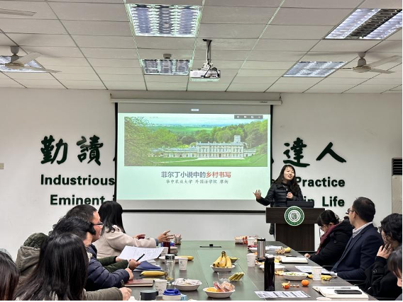 廖衡为“菲尔丁小说中的乡村书写”为题,图文并茂地探讨了菲尔丁小说中乡村书写的历史动因、诗学模式以及“乡村理想”与田园风景建构。她指出了菲尔丁小说中乡村书写的社会价值所在:菲尔丁的乡村书写参与了当时英国社会的道德伦理、美学与民族身份建构。李敏锐老师在主持点评时指出,“要了解十八世纪的英国,就要看菲尔丁”,菲尔丁通过伦理道德批判以追求“纯洁”(purity)和“美好”(goodliness),鼓励大家学习廖老师的研究方法,不断拓宽学术视野。