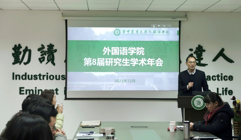 颁奖仪式后,冯国林在总结时指出,研究生各小组汇报选题新颖、角度独特,部分选题贴近时事热点,老师和同学们在相关领域进行了卓有成效的研究,取得了可喜的研究成果,体现了华农学子的学术精神、创新精神、拼搏精神。他希望老师和同学们在学术发言时,要注意细节、讲求规范,用词用语要准确;要发掘自身兴趣点,自主策划组织小主题、小规模、形式多样的学术讨论活动,平等自由地开展深度思想交流;要营造更轻松、更自在、更愉快的学术交流氛围,享受学术交流的兴奋之情和畅快之感;要把语言学和文学的研究同丰富多彩的生活、千姿百态的社会、博大精深的文化、跌宕起伏的历史、奇妙无穷的地理等结合起来,增加研究的宽度、深度和温度,对人产生正向启迪、鼓励和引导。最后,他希望今后组织研究生学术年会,时间要更充裕一些、环节要更简洁一些、环境要更轻松一些、氛围要更活跃一些、体验要更自在一些。