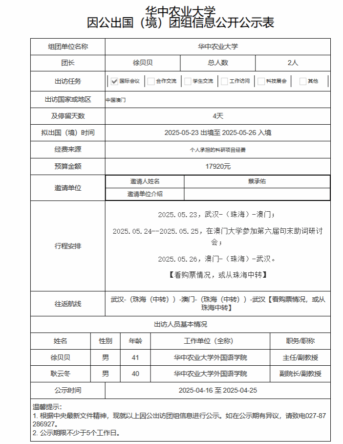 伟德因公出国(境)团组信息公开公示