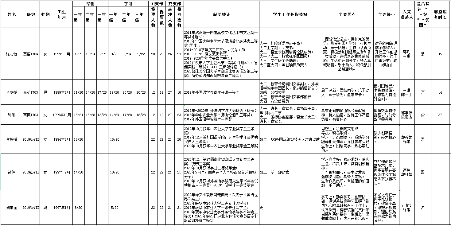 经一年以上培养教育和考察、基本具备党员条件的毕业生班级入党积极分子申请,党团支部推优,老员工党总支考察,基层党委讨论研究,确认陈心怡等6名同志为伟德官网2021年3月拟发展对象,现将名单予以公示,公示时间为:3月17日-3月23日,共七天。