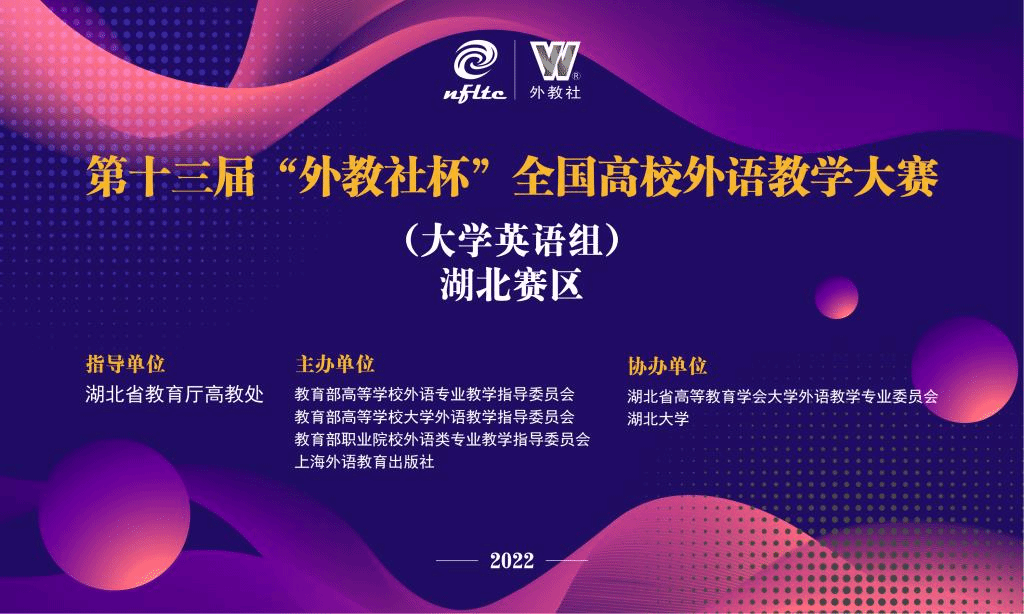 据悉,本届“外教社杯”全国高校外语教学大赛由湖北省教育厅高教处指导,上海外语教育出版社主办,湖北省高等教育学会大学外语教学专业委员会协办,湖北大学伟德官网承办。作为外语界高规格的教学大赛,它展示了公司高度重视教学工作的成果,同时展现了青年教师的风采与教学能力。