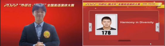 “外研社·国才杯”全国英语演讲大赛于2002年创办,在国内外皆受到广泛关注,现今已经成为全国参赛人数最多、规模最大、水平最高的英语演讲赛事。由于疫情影响,本次“外研社·国才杯”英语演讲大赛全程采取线上方式进行,分为地面赛区和网络赛区。作为网络赛区参赛选手,张唘瑞同学从4000多名选手中突出重围,通过层层筛选进入前90强,晋级国赛第二阶段比赛。