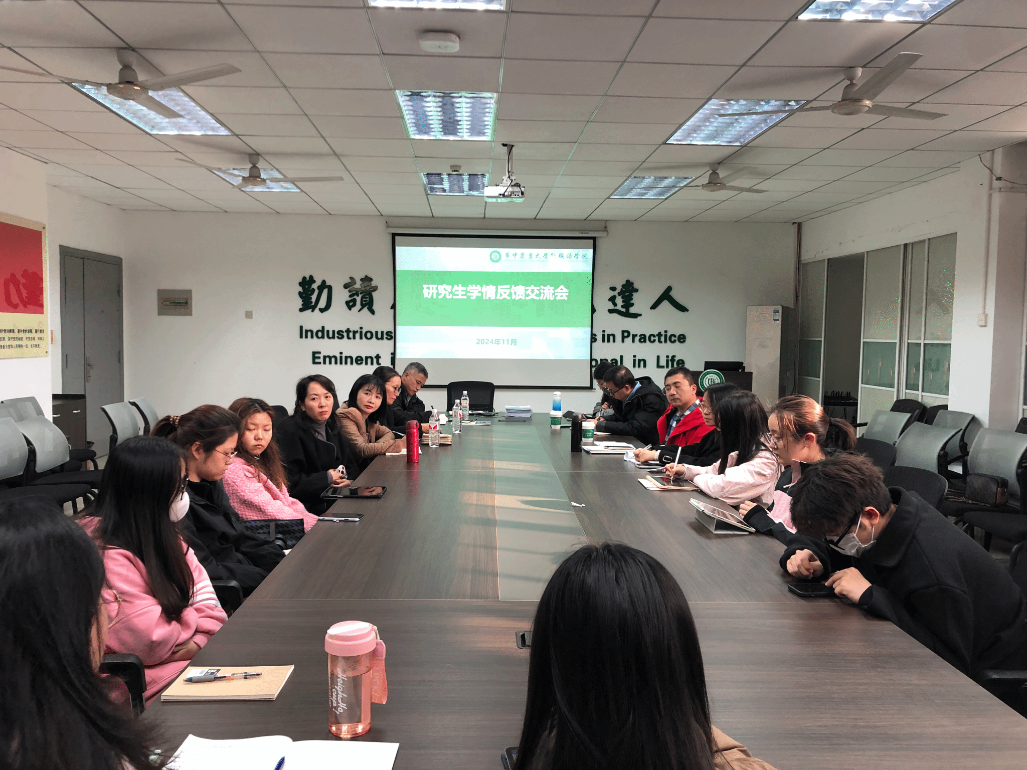 研究生同学逐一发言,共谈学风、共议学情,献言献策,现场氛围热烈。