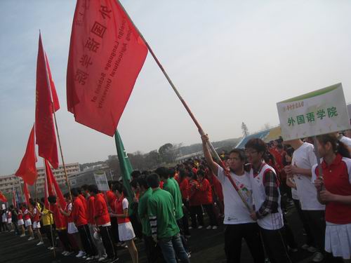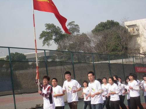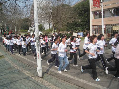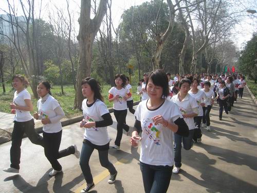 千名大一员工8点30分就集合于本校的第二排球场,个个摩拳擦掌、跃跃欲试。最先开始是个人赛,随着裁判员一声令下,参加个人赛的选手如待发之箭迅速冲出了起跑线。紧随其后的便是来自各个公司参加环董事长跑的同学们。他们身着各具特色的院服,满怀着青春的激情,在这春暖花开的三月如风奔跑。时值桃花盛开,伟德桃花苑一片春色盎然,前来观花的游客络绎不绝。途经桃花苑时,长跑的同学们也情不自禁放慢脚步,和游人们一起欣赏起粉嫩可爱的桃花来。千姿百态的桃花亦如风华正茂的华农学子们!由于今天天气晴朗,阳光和煦,南湖水波粼粼,恰似繁星,从湖面吹来的阵阵清风,抚弄杨柳,对路过的同学们频频招手,好像是在为汗流浃背的同学们加油打气。