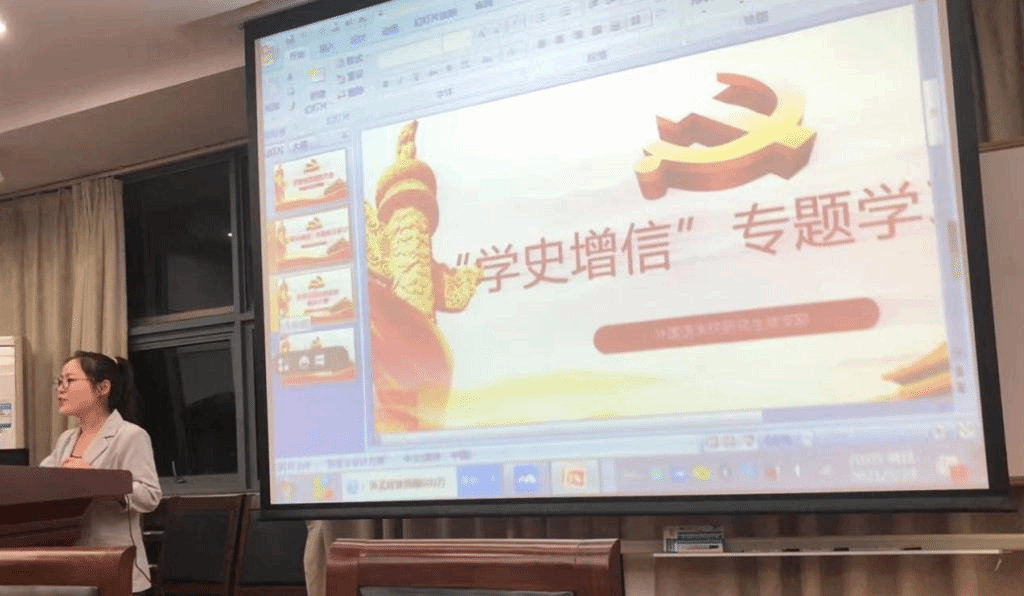 全体同志一起开展了“学史增信”专题学习研讨,崔武梦鑫认为,“增信”不仅仅包括“道路自信,理论自信,制度自信,文化自信”,还需增强作为共产党员的“身份自信”,丁朋同志发表了自己对“身份自信”的看法,同时也同在座党员交流了近期党史学习的心得体会,他谈到,作为一名研究生党员,我们应加强党史学习,从中汲取营养,反思自身,将理论学习与实践相结合。其他党员也交流学习心得,对“学史增信”进行了热烈的探讨。