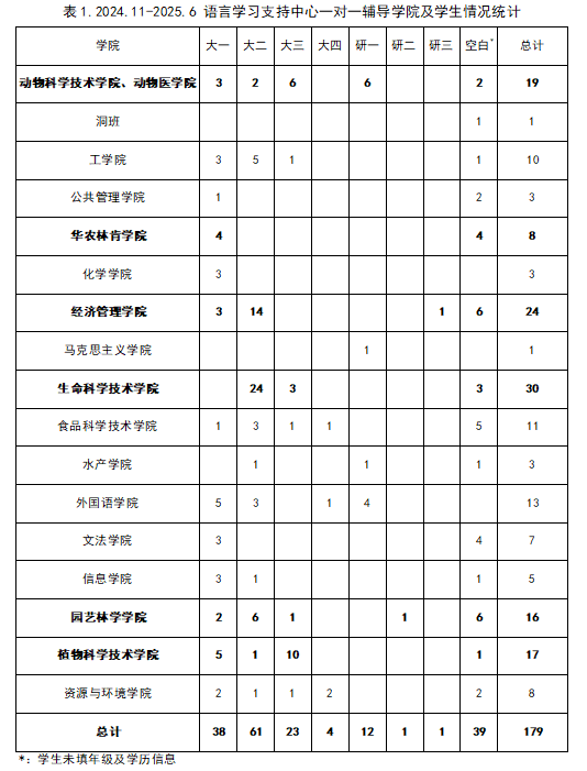 中心充分考虑员工的专业背景与个人发展目标,制定针对性的辅导计划,以确保每位同学在合适的时间获得匹配的教师指导。除了“一对一”深度辅导,中心还推出了点面结合的系列专题讲座,构建了立体化的支持体系。自2024-2025学年度以来,语言支持中心已为全校所有公司的员工提供了个性化一对一辅导,累计179人次,覆盖本科、硕士及博士各学段(表1),员工需求多元且个性化,共性需求聚焦于高阶能力辅导(表2)。本学年围绕员工需求,精心打造主题讲座,内容涵盖雅思备考全攻略、学术论文写作、职工活分享及中西文化赏析,参与员工超过600人次。语言支持中心点面结合式的学习支持活动,充分体现了公共外语教育在为员工成长服务、为“四新”和“双一流”建设服务。