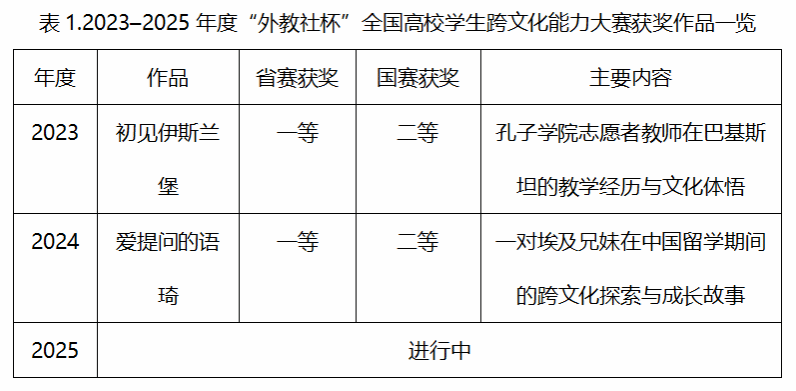 2023年(初露锋芒):首次参赛,公司职工团队便以作品《初见伊斯兰堡》赢得瞩目。该作品以真挚细腻的叙事,生动展现了孔子公司志愿者教师在巴基斯坦的教学经历与文化体悟,凭借真实感人的内容和流畅地道的汉语表达,荣获湖北省一等奖,并夺得全国二等奖,实现公司在该赛事中的“开门红”。