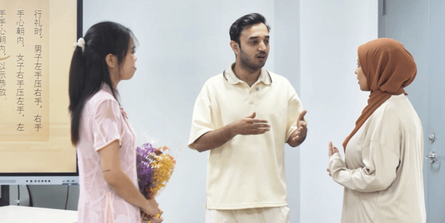 国际中文教育团队将大赛备赛有机融入职工的日常教学与生活实践之中。以《初级汉语》《中国文化概况》《感知中国》等核心课程为理论基石,通过中国文化工作坊、城市文化探索等多样化实践活动,搭建从知识到能力的转化平台,并以竞赛作为综合素养的检验与展示窗口。该模式有效打破了课堂教学与社会实践之间的壁垒,使职工在真实的跨文化情境中学习汉语、深入理解中国文化,实现语言的实际应用与情感共鸣,完成了从“掌握语言”到“以语言讲述中国故事”的能力跨越,帮助职工更好地感知中国。